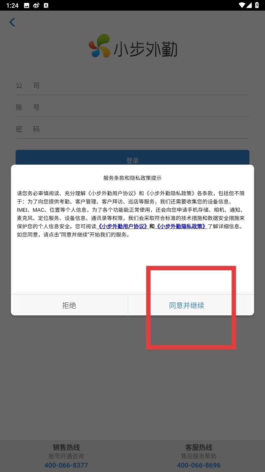 2、进入软件之后,会跳出服务协议,需要认真阅读软件给出的建议后点击同意并继续下一步;