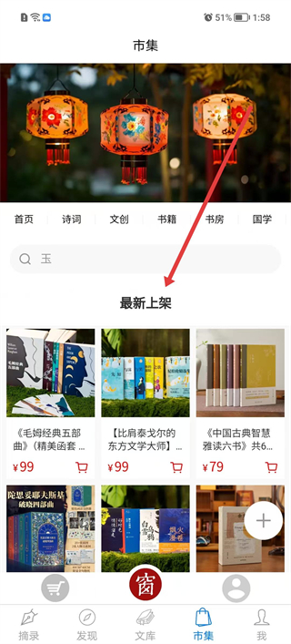 3、切换至市集专区查看最新上架的文学出版物,了解各类书籍的定价与版本信息;