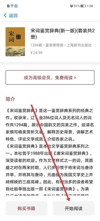 4、在图书详情页查阅作品简介,可选择单独购买或升级会员免费阅读完整内容。