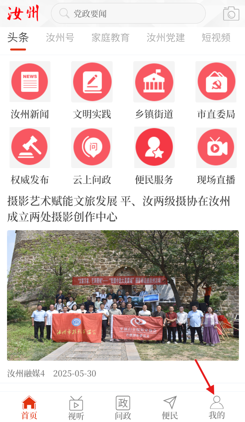 1、打开云上汝州app,在界面下方找到 “我的” 选项,点击进入个人管理页面。