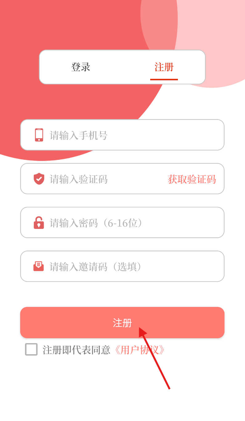 4、在注册页面依次填入手机号、接收的验证码、设定的密码,确认无误后点击注册完成账号创建。