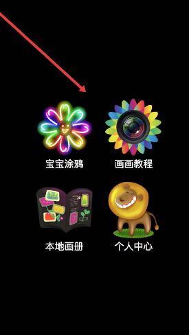3、功能选择页面,有宝宝涂鸦、画画教程等多种功能入口,还有本地画册和个人中心板块。