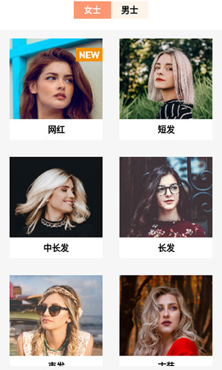 1、在本网站下载换发型相机app,打开软件可以看到首页分为男士和女士专区,用户根据自己的需求选择;