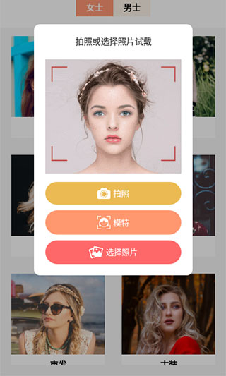 2、我这里选择的是网红发型,可以选择拍照进行试戴,或者选择照片也可以;