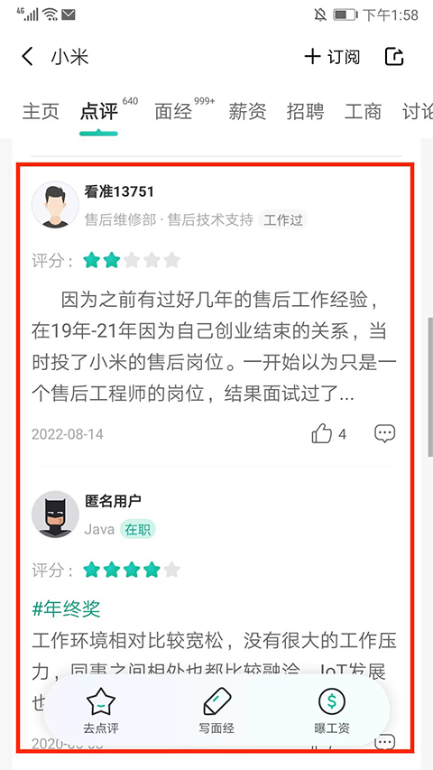 4. 【匿名分享】,匿名发布点评、工资、面经以及公司照片,公司职场那点事,想说就说