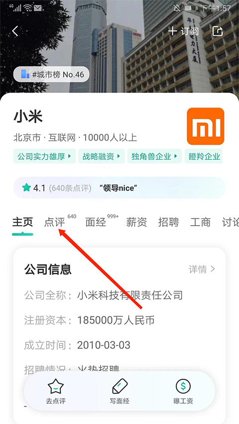 4、进入到点评界面,往下滑动,即可看到公司评价内容。