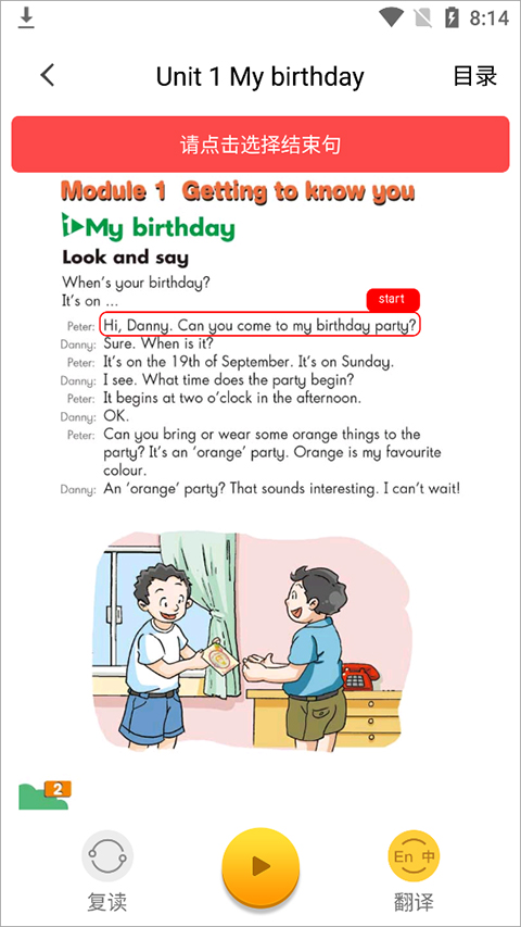 6、选择第一句要复读的语句。