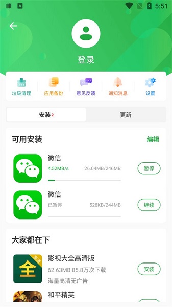 3、深度应用管理:集成卸载、备份、权限查看等功能,提供移动软件的一站式管理。