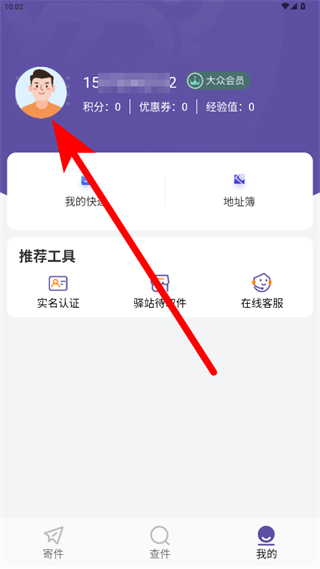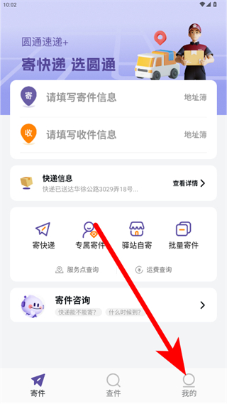 1、打开圆通速递APP,点击右下角我的,进入个人页面;