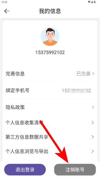3、在我的信息页面,点击注销账号选项,进入注销说明页面;
