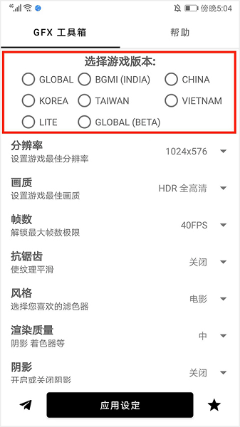 1、每次启动gfx工具箱时,界面顶部会显示【选择游戏版本】的提示,只需勾选您需要的版本即可。