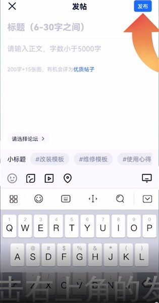 3、输入6-30字之间的标题与正文内容,最后点击右上角的发布即可。