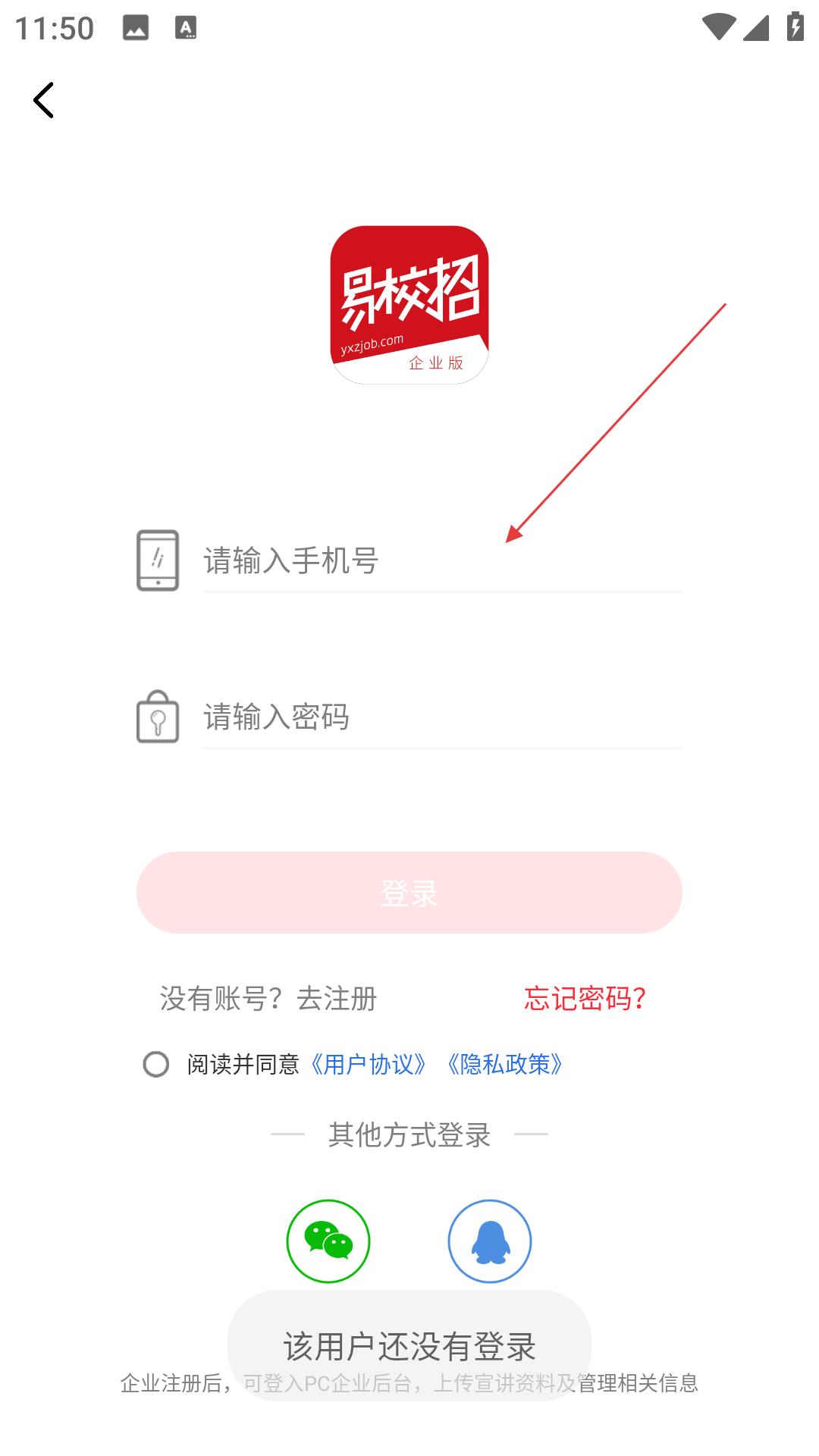 2、登录界面,用户可输入手机号和密码登录,也可选择微信或QQ登录,登录前需勾选同意用户协议和隐私政策;