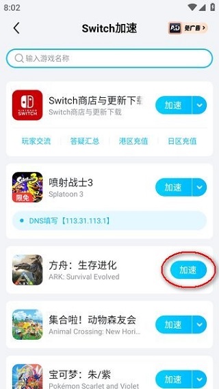 1、在“首页”找到“Switch加速”专区,点击进入。