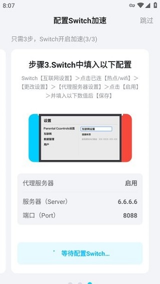 7、完成以上设置后,即可实现Switch网络加速。此时使用Switch游玩游戏,也能享受biubiu加速器提供的稳定加速服务。