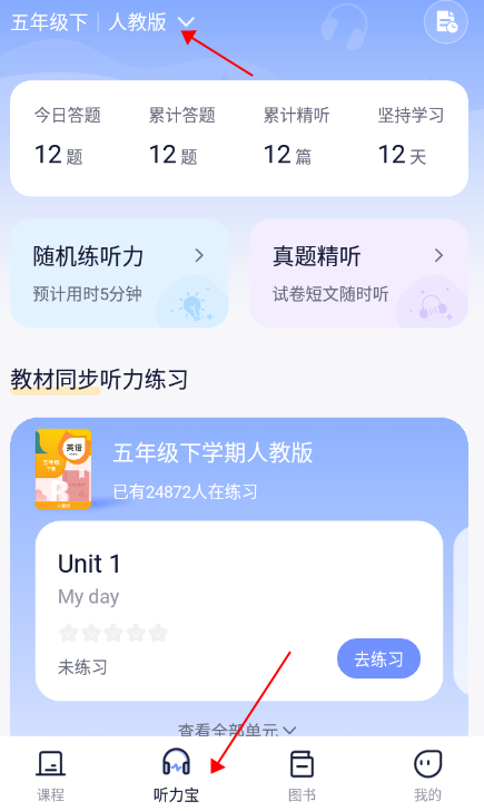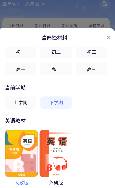 2、选好你的年级,教材类型;