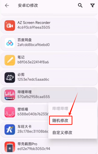 5、选择需要修改的应用,点击“改为随机生成”即可完成操作。