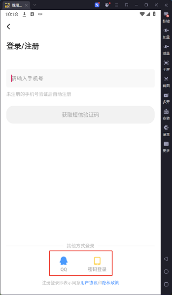 3、在登录界面可以选择手机号登录或者其他登录方式。
