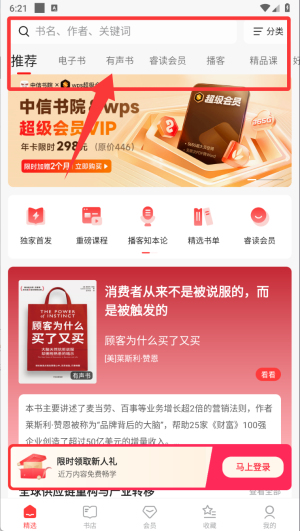 中信书院最新版app是一款非常不错的书籍阅读软件,这里有着超多有声书籍、电子书、精品课程,为用户带来各个方面的丰富知识。各位喜爱阅读的朋友一定能从中信书院最新版app收获许多,提升自己的知识水平与能力,感兴趣的朋友赶紧下载吧。