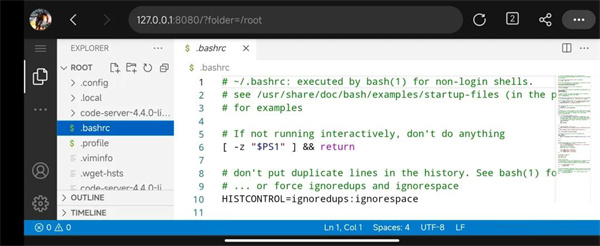 此处直接运行后,VSCode Server就在手机上跑起来了。