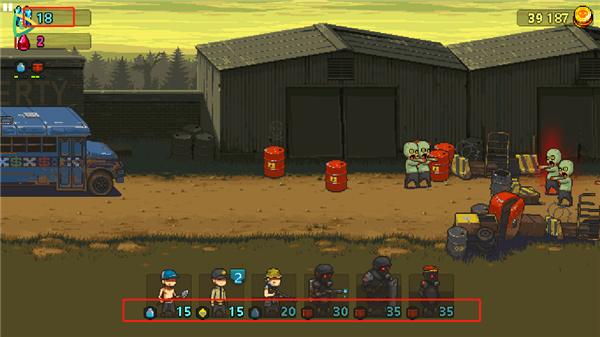3、当看到勇气点数持续上升时,玩家可以根据僵尸的阵容,派出你的阵容队员,不同的队员拥有不一样的技能属性。