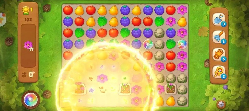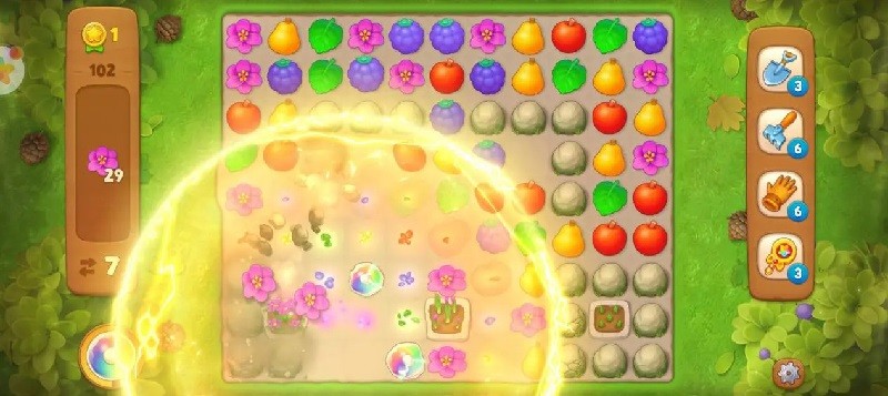 4. 选好之后,开始在花坛的旁边消除元素,需要在花坛的旁边消除三次,才能成功种出花朵。