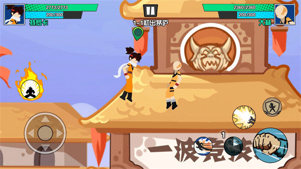 4、进入游戏后,使用左侧摇杆控制角色移动,右侧按键执行攻击操作。
