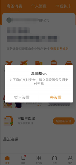 3、自动登录后系统也会弹出支付密码设置提醒,主要是针对在分贝通消费的,如果跳转微信/支付宝就用不到这个支付密码。