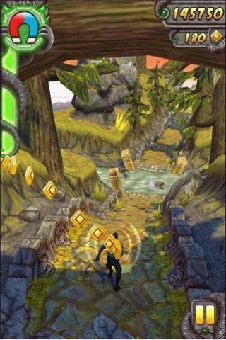 神庙逃亡2游戏操作很简单易懂,只需要一只手就能玩,用滑动和摆动手机就能控制角色,以及在转弯处、树杈、断路前,划屏控制转弯、跳跃和下滑动作,并收集一路上的古迹碎片,一次奔跑通过古寺的时间在30秒至几分钟,让人很容易就进入游戏,也很容易创造游戏记录,同时也能超过好友的得分记录,实现一种欲罢不能的游戏体验。