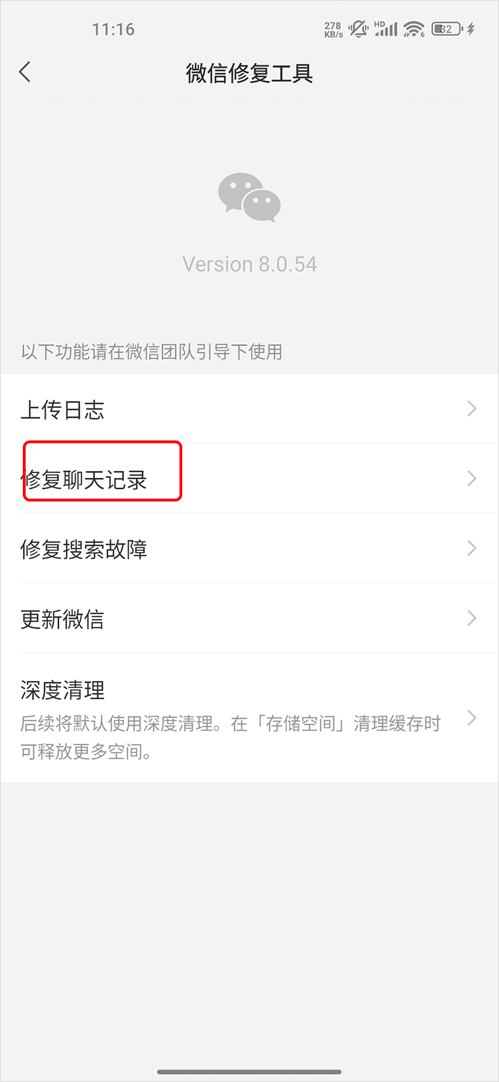 4、现在可以看到第二个是【修复聊天记录】的选项,也是点击。