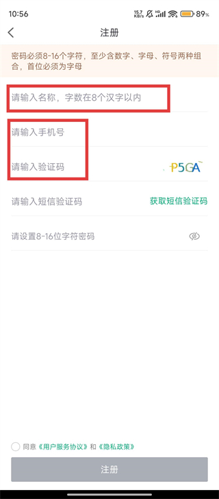 2、接着我们需填写【8个汉字以内的名称】,输入【手机号】,再填写页面显示的图形【验证码】;