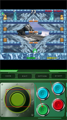 3、左侧轮盘用于操控角色移动,A键投掷炸弹,B键控制跳跃。需注意每次只能投掷一枚炸弹。击败怪物可获得带有幻影特效的加速鞋,炸开木桶也可获取道具辅助通关。