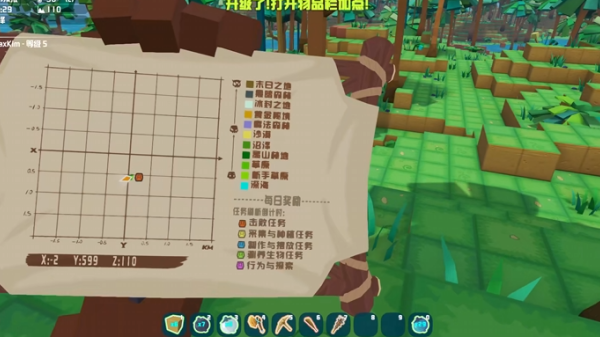 1、打开地图可以查看附近的地形,每种地形代表不同的颜色,玩家可以规划自己的冒险路线。