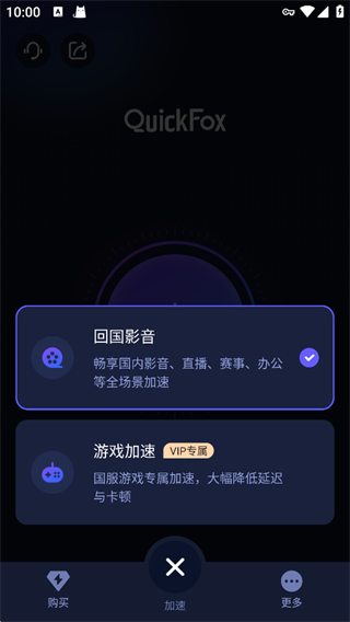 ①当想追剧听歌刷网页时,就先打开QuickFox的影音模式,然后重启追剧或听歌的app(是中国大陆的合法软件才有用哦),就会惊奇的发现,所有音乐和电视剧都能看了,速度杠杠的。