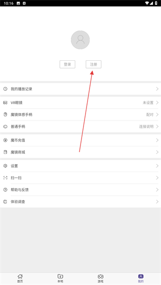 1、启动暴风魔镜应用程序,转到主页,单击右下角的“我的”图标。