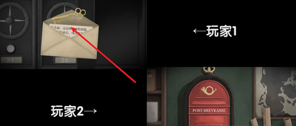 4、根据玩家2信箱上的提示,操作玩家1打开对应信箱取得钥匙,参考下图。