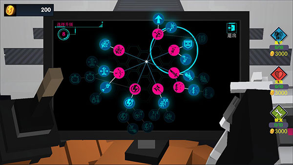 2、战斗结束后返回地下仓库,走到前方机器人处,点击右上角出现的升级按钮,即可进入技能升级界面。