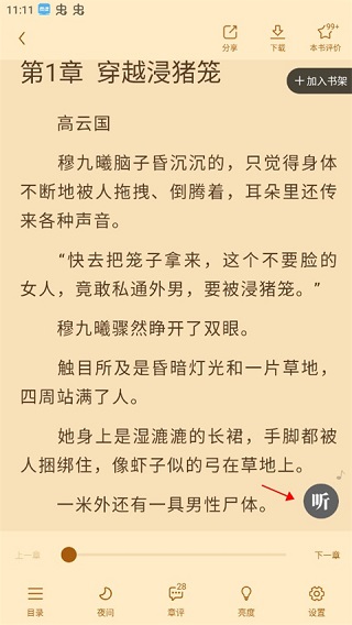 4、在阅读小说时,也可直接点击页面上的听书图标切换至音频播放。