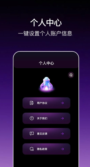 5、在个人中心,您可以查看用户协议、关于我们和隐私政策,也可以编辑反馈。