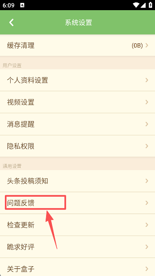 3、在设置菜单中找到并进入【问题反馈】。