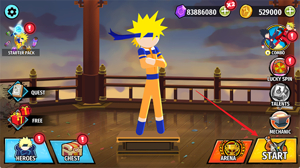 1、进入游戏,点击“START”按钮开启你的忍者之旅。