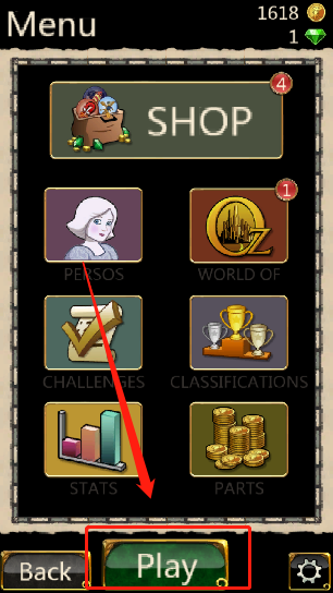 1、点击“开始”即可进入游戏主界面。玩家也可点击菜单按钮,进入任务与道具页面,查看各类任务并购买所需道具。