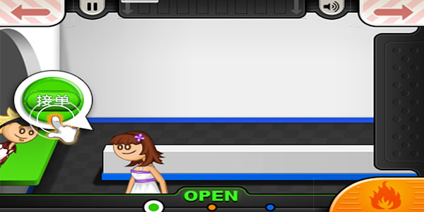 1、首先,进入汉堡店的点单界面,点击左侧绿色按钮开始接受顾客订单。