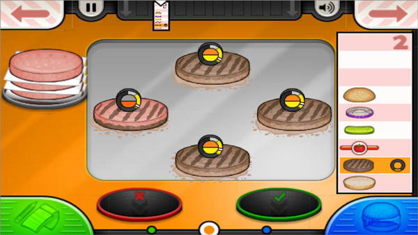 2、合理规划时间,在第一位客人到来前可以预先烤好几块肉饼。与客人交流接单后,可往烤炉中添加三块肉饼,提前为需要嫩度肉饼的订单做好准备。