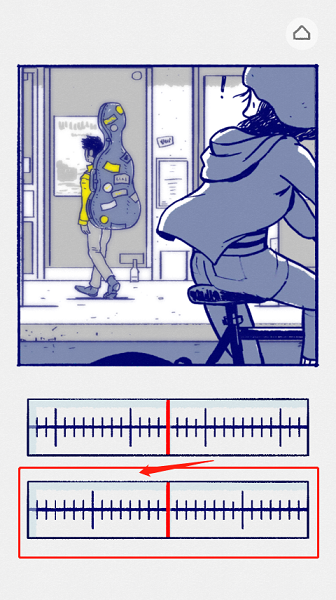 2、上刻度:向右滑动至上部刻度最长线位置。