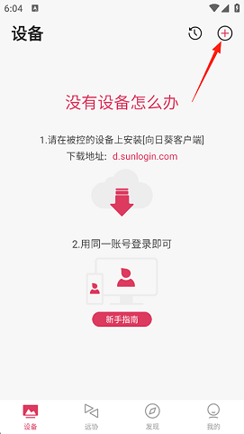 1、打开向日葵远程控制应用,点击首页右上角的“+”图标。