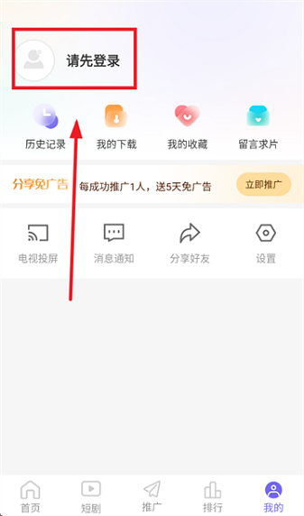 2、在个人页面点击“请先登录”。