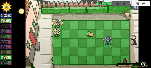 2、在该模式下可自由选用各类植物,请务必注意搭配产阳光的植物。