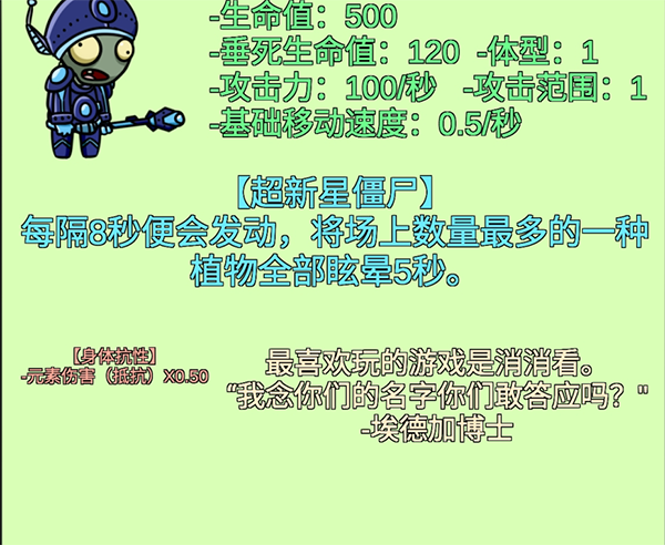 3、图鉴百科系统:收录全植物/僵尸属性、弱点及背景故事,助力玩家制定针对性战术。