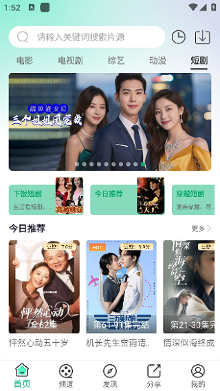1、启动番茄影视大全后,可在页面顶部看到电视剧、电影、动漫、综艺等多个分类专区。